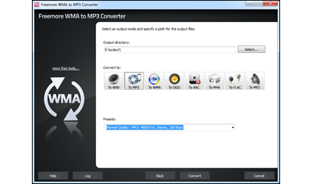 Freemore WMA to MP3 Converter is audio converter freeware for Windows and it helps you in case you need to convert your WMA music to MP3 and several other key formats. This program was designed specially to simplify as much as possible the process of conversion. At the same time, it gives you an opportunity to adapt it to your needs. That's why the interface of the program is simple and intuitive and it doesn't contain anything superfluous.